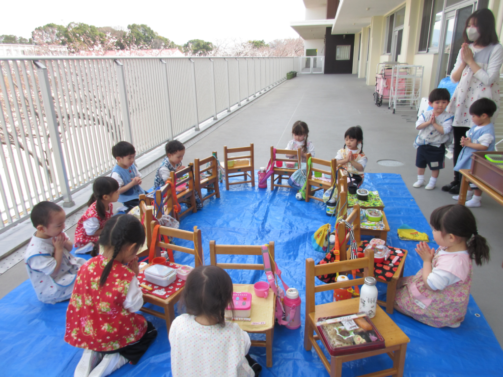 桜ももうじき満開!心地良い天気だったの外でお弁当を食べました。