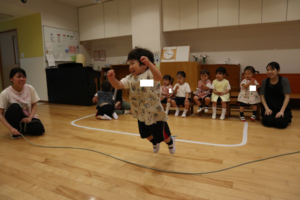 大繩をヘビに見立てて🐍、跳んだり…