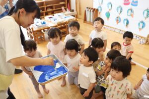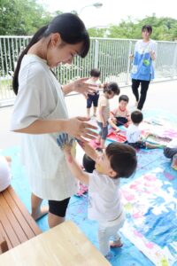 「もっとやりたい!」「せんせいにもぬってあげる!」と最後まで夢中で楽しんでいました。