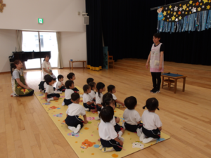 まずは、七夕とはどんな日なのか紙芝居を見て、
