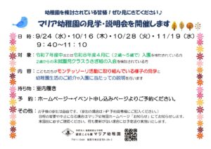 幼稚園見学会の日程になります。