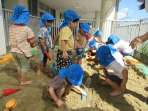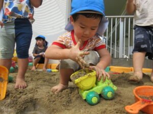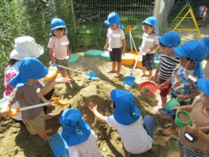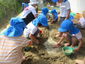 みんなで大きな山を作り、トンネルを掘って、川を作り、山から水を流すと・・・