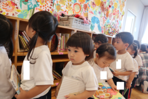 と先生に伝える練習をして、絵本をかりることが出来ました✨