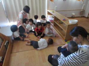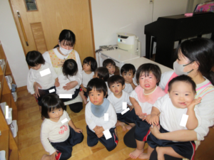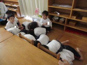 未満児では、園内放送や犯人役の先生に驚き、泣いてしまう子もいましたがきちんと先生の話を聞き参加することが出来ました!