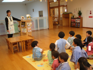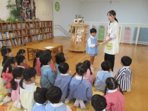 そして10月27日には、『こども読書の日』として絵本を読む時のお約束やマリア100冊についてのお話を聞きました。