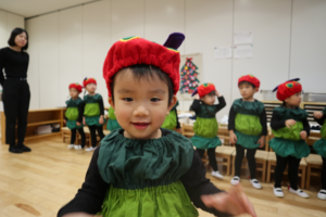 いろいろな果物から出てきて、かわいい歌と踊りを披露してくれたあおむしさん♡
