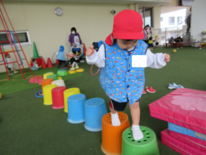 今まで遊んでいた遊具とは違ったものにチャレンジする姿が見られます♪