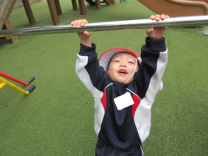 鉄棒にぶら下がったり、すべり台を滑ったり、