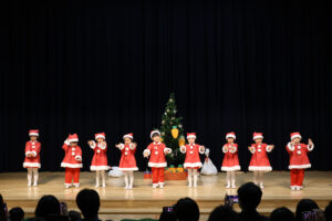 初めてのクリスマス会のステージにドキドキ緊張のC組さん。みんな笑顔で頑張りました!!