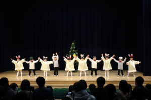 初めてのクリスマス会のステージにドキドキ緊張のC組さん。みんな笑顔で頑張りました!!
