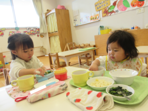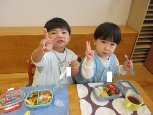 朝から「おべんとうもってきたよ!」や「ままがつくってくれたんだよ!」といいながらお弁当を楽しみにしていたこども達☺