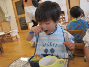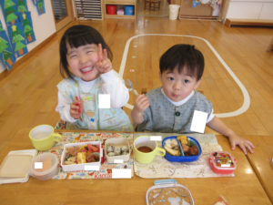 朝から「おべんとうもってきたよ!」や「ままがつくってくれたんだよ!」といいながらお弁当を楽しみにしていたこども達☺