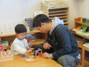 ゆり組(2歳児)ではお父さんお母さんもお部屋に入って一緒におしごとをしましたよ☆