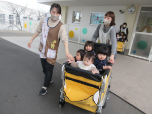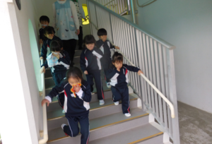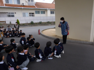 サイレンの大きな音に、少し緊張している様子のこども達でしたが、先生の話を聞いて落ち着いて避難することができました。