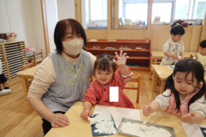 「ふわふわ~♡」と言いながら、綿の感触を楽しむこども達でした☺