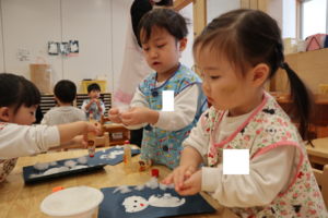 おひさま組では、雪だるまの製作活動を行いました⛄♡