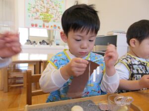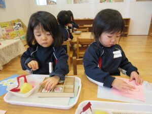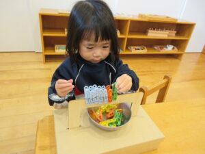もうすぐ進級!春を待ちどおしく感じている未満児クラスでは充実したおしごとの時間を過ごしています☆