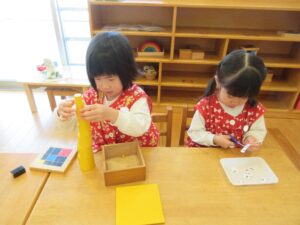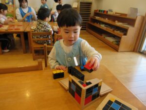 まだ言葉では説明できないけれど教具を通して感覚的に理解できています。