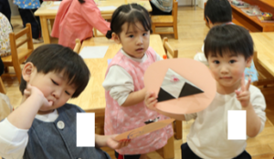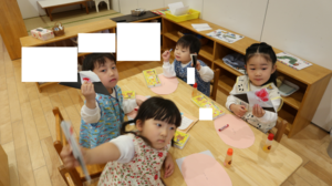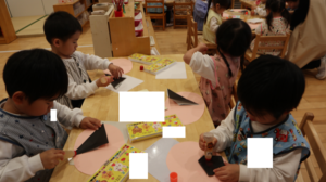おひさま組では、折り紙を使った製作を行いました!