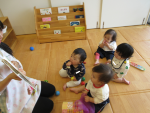 絵本をじーっと見る姿やおあつまりではピアノの歌に合わせて手拍子する姿も見せてくれました。