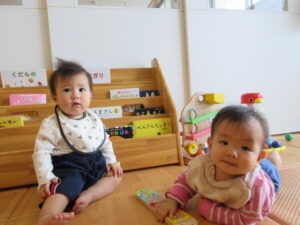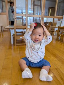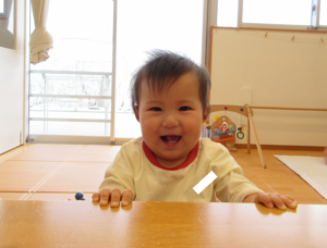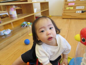 初めての場所で涙が出てしまう姿も見られますが、お気に入りのおもちゃを見つけてにこっと笑う姿もだんだん増えてきました。