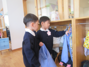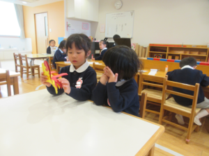 A組さんは一緒に準備をしてくれたり、優しく教えたりする姿が見られました。