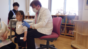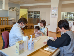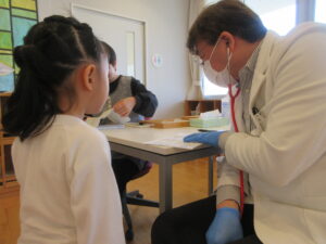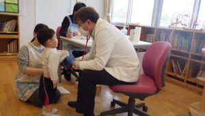 待っている間はドキドキしているお友達もいましたが、自分でお名前を言ってお医者さんに診てもらう事ができました。