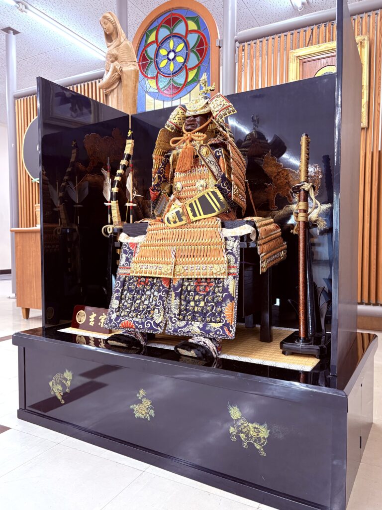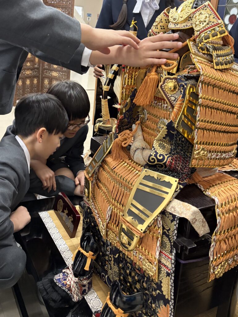 本日、5年生が武者人形を飾りました。