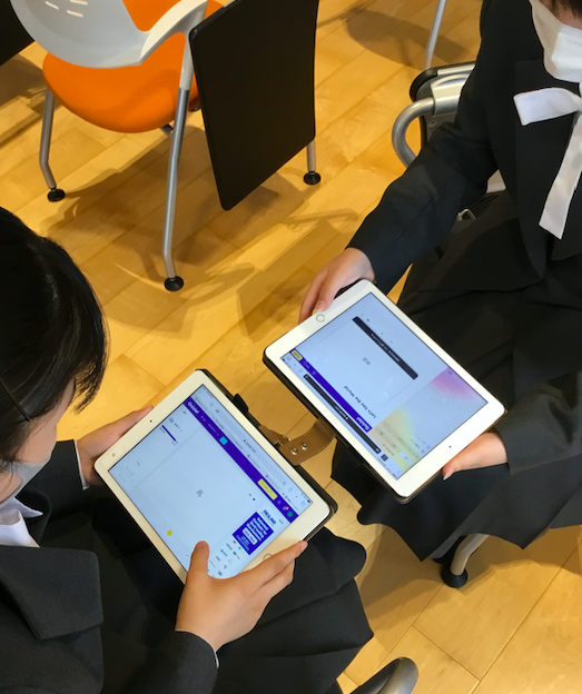 Students at Kaisei use ICT to help enhance their English abilities. Our English lessons incorporate various applications that help to motivate students with fun new ways to learn. This is a photo of the second-grade ESL class utilising technology to improve their English.