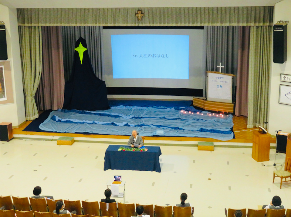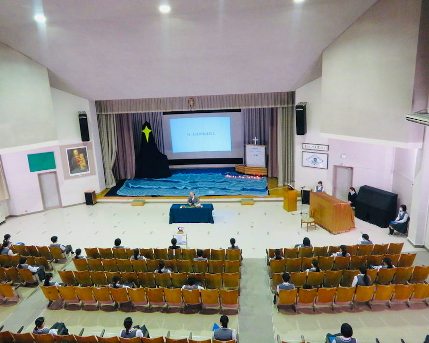 10月20日、熊本修道院よりシスター入江をお迎えし、聖フランシスコの朝礼が行われました。今日から3日間、各学年ごとに実施します。今年のフランシスコ朝礼のテーマは、 「つながり」~主と共に、この船は進む~でした。2年間のコロナ禍を振り返りながら、人々の献身的な働き、人と人とのつながり、世界中の人々との協働に思いをめぐらせました。