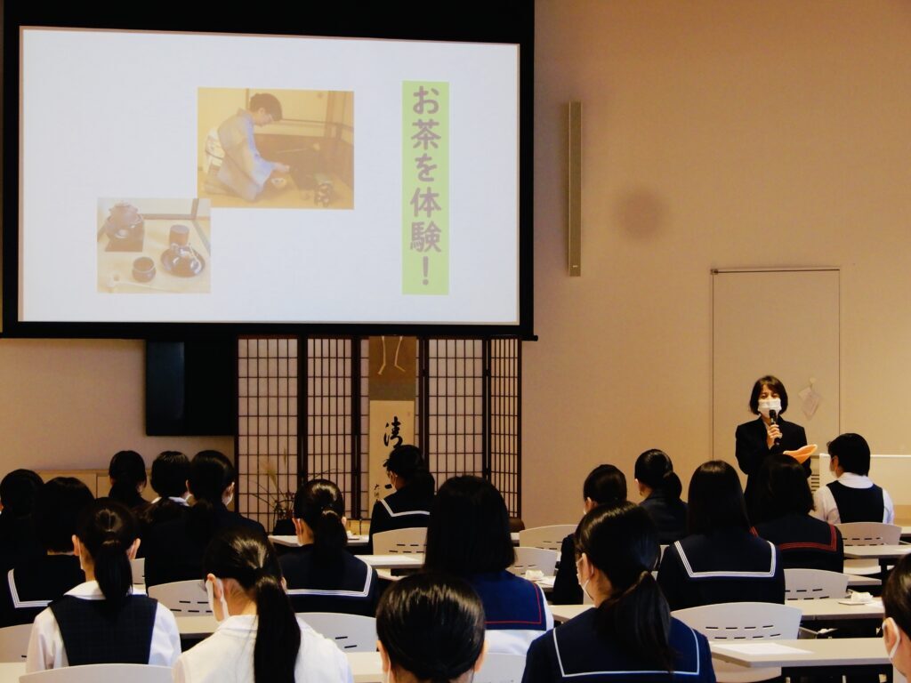 進学コースでは、「茶道の心と千利休」について学習し、日本の伝統的な茶道の歴史について学びました。