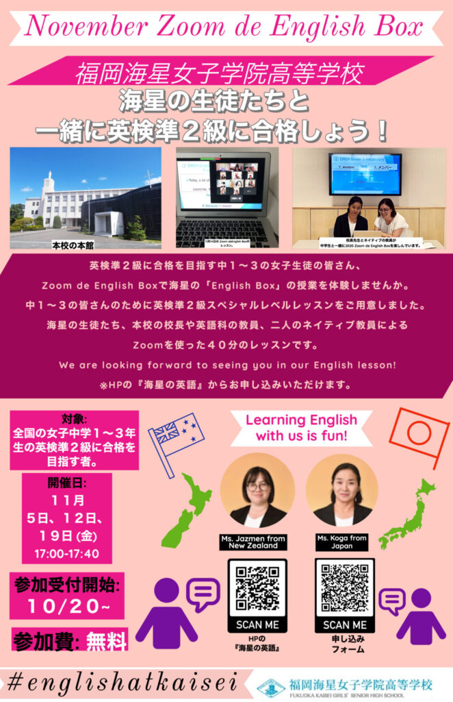Zoom de English Boxで海星の「English Box」の授業を体験しませんか。