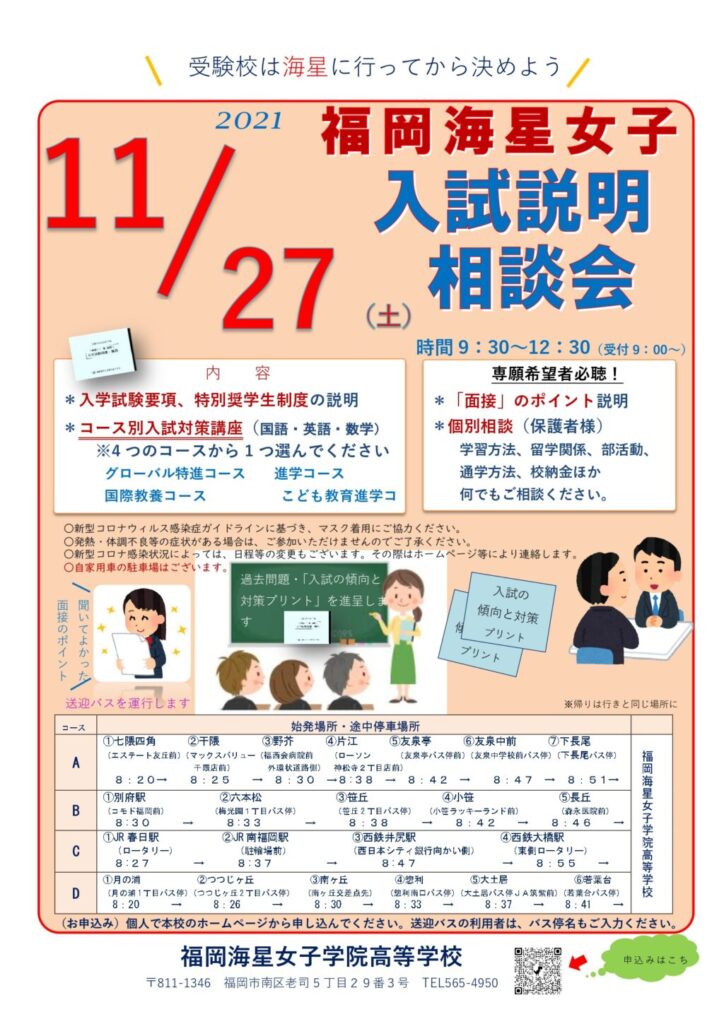 11月27日に入試説明相談会を開催します。実際の過去問を用いて入試問題の解説を行います。また、特別奨学生制度の説明も行います。入学試験に向けて、今後何をやらなければならないのかについても説明します。保護者の方のご参加もお待ちしております。個別の相談ブースも設けています。