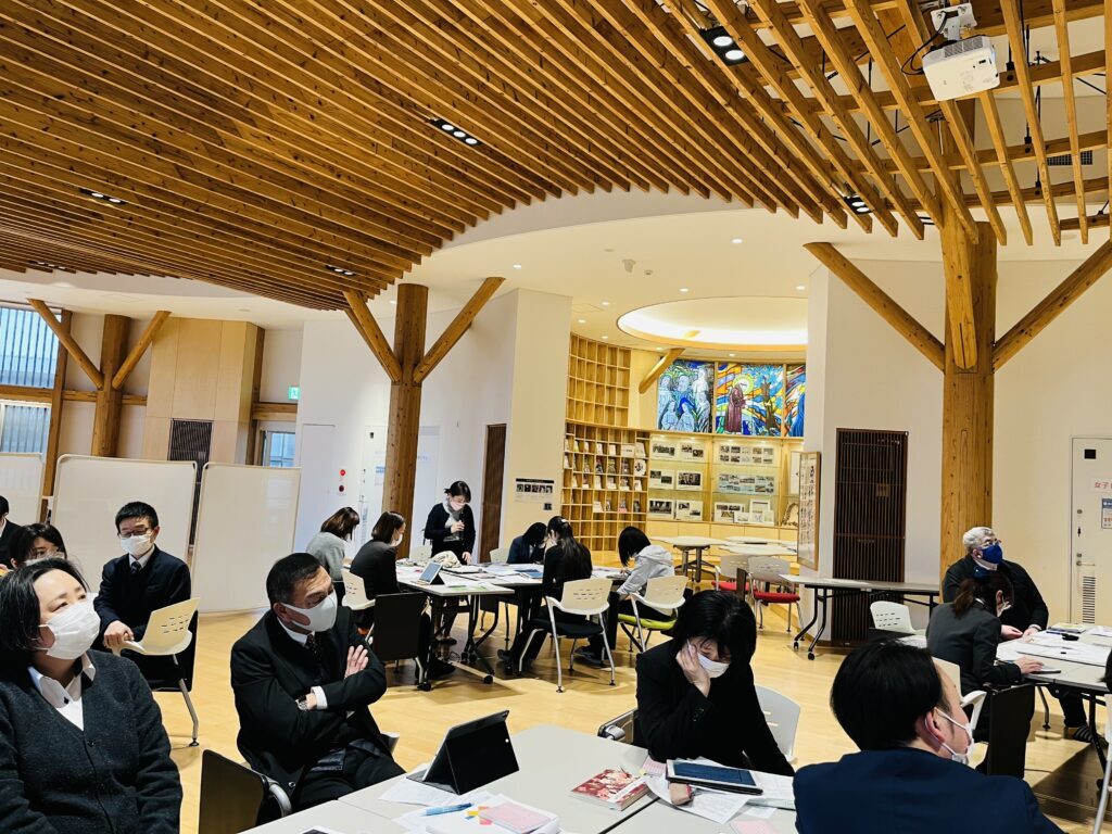 次年度、新学習指導要領の実施で、評価方法を改訂するにあたって研修会が行われています。先生方は、ルーブリック評価システムについて、互いに協議し、学び合い、充実した時間を過ごしました。次年度の授業において、パフォーマンス課題やルーブリック評価、新しい年間指導計画を導入する研究を精力的に進めています。