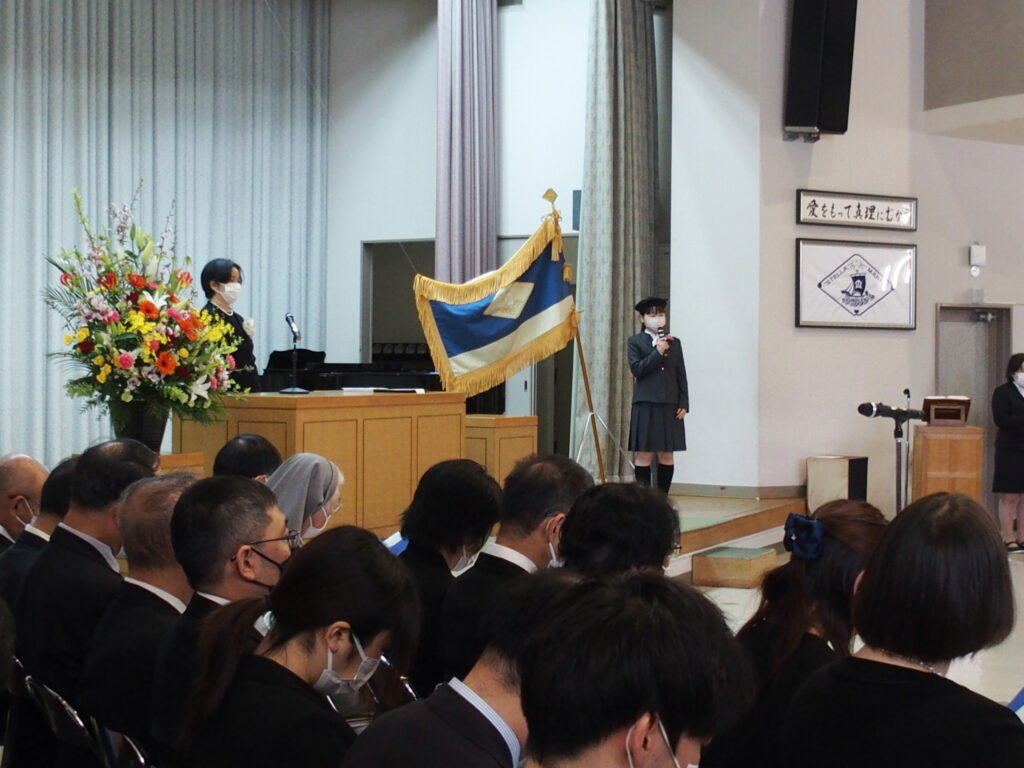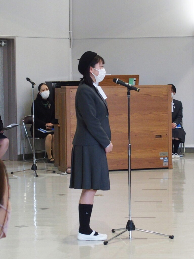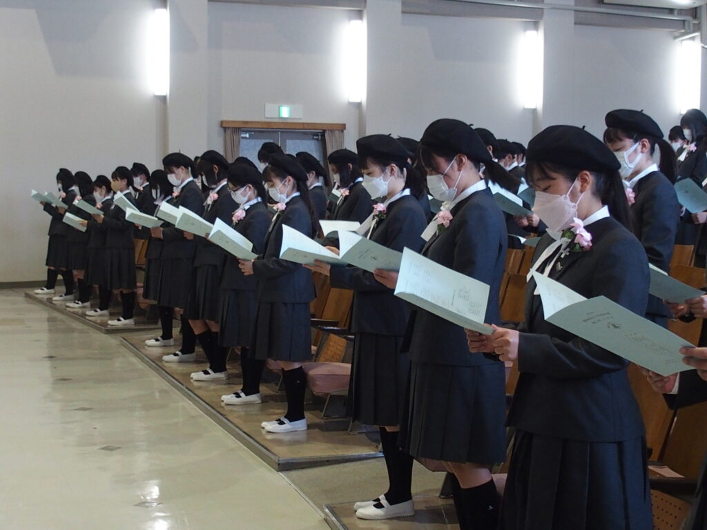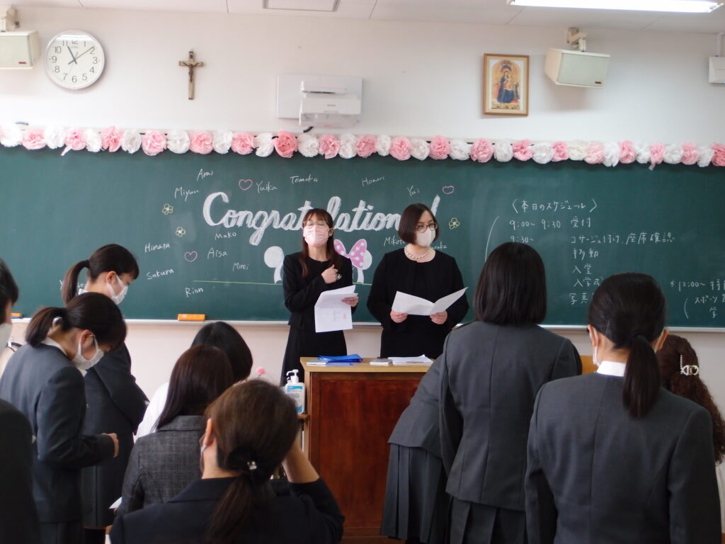 本日、美しい春の日、第59回入学式を挙行いたしました。入学式では、福岡海星のルーツや、聖書の話に耳を傾け、聖歌を歌い、新入生の新しい学校生活のために、祈りました。また、学校長の式辞では、「種を蒔く人のたとえ」が話されました。
