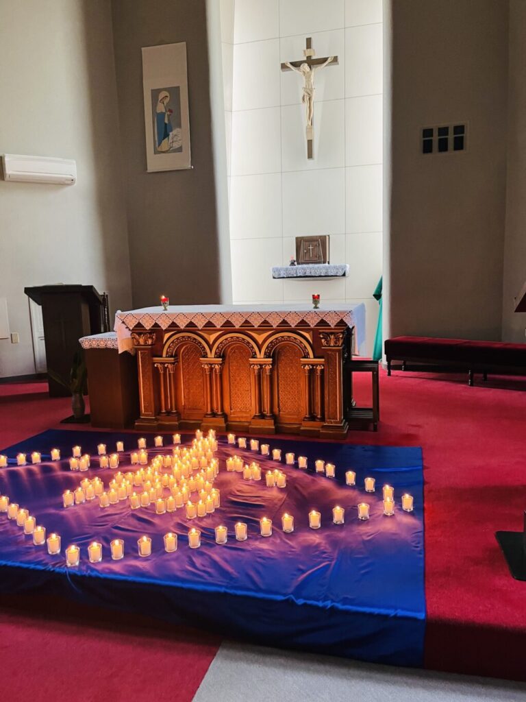 4月12日に、研修最終日は老司教会で楽しかった研修をキャンドルサービスで締めくくりました。生徒のみなさんは、学年の先生方と海星での新たな学校生活とこれからの3年間が実りあるものとなるようにお祈りしました。生徒のみなさんにとっても、先生達にとっても、特別なひと時となりました。