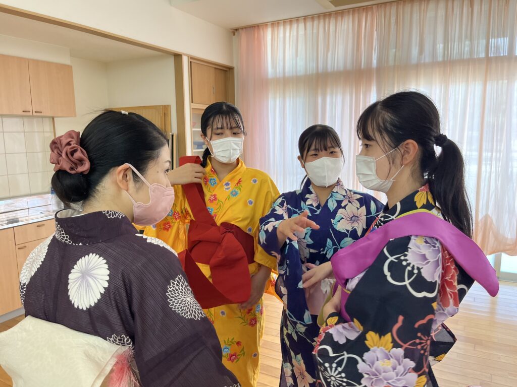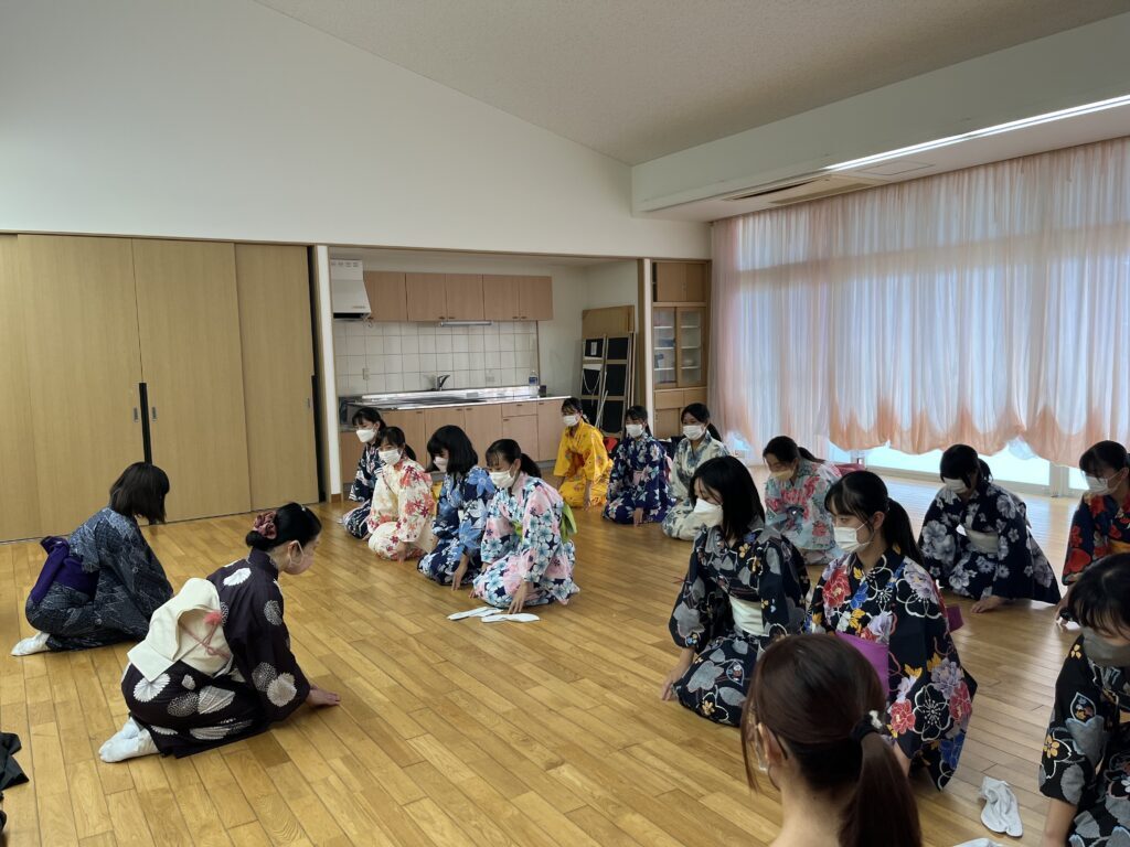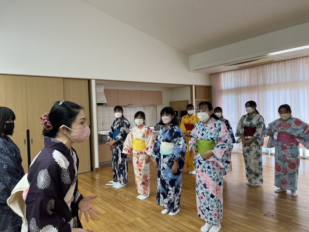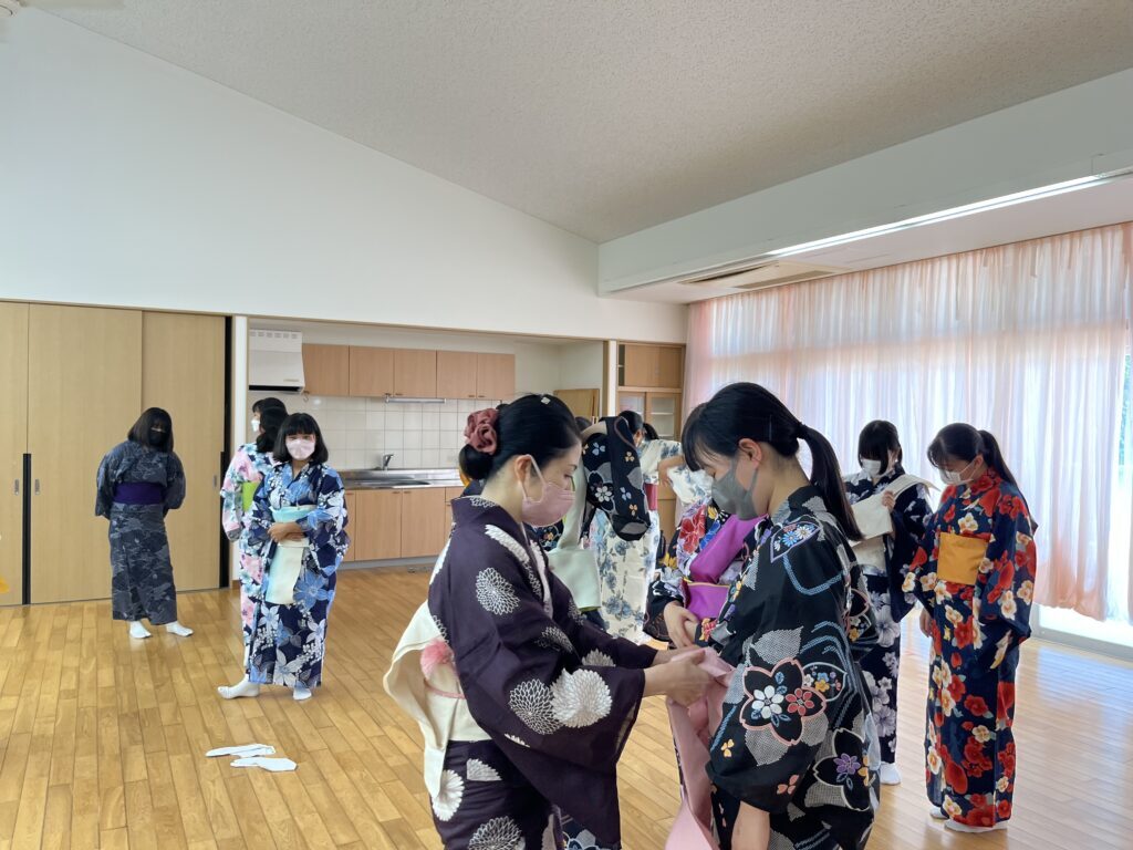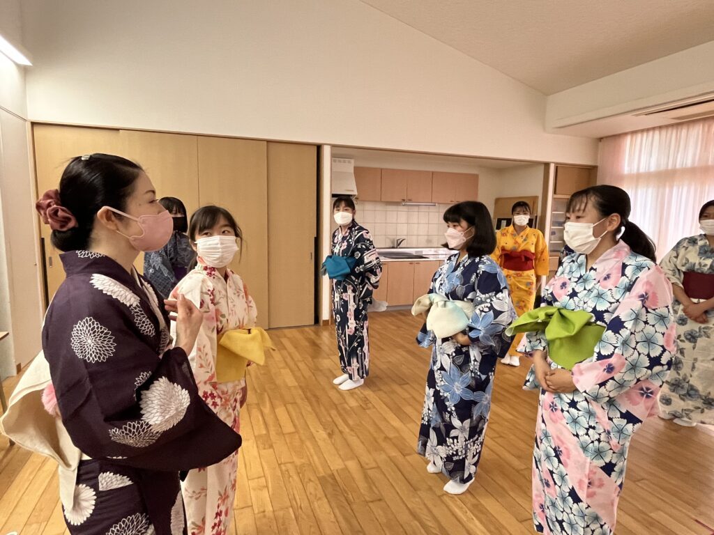 7月29日(金)、1年生の国際教養コース・グローバル特進コース・茶道部の生徒が、浴衣の着付け講座を受講しました。講師は石橋先生、なんと海星の卒業生!かつては宝塚歌劇団のメンバーとして、そして現在は女優さんであり、日本舞踊の講師をされているという方に教えていただきました。今日の講座では、浴衣の着方の基本、帯の結び方を教えていただきました。10月には自分で浴衣を着て、日本舞踊を教えていただくことになっています。日本の文化について深く学ぶ機会に恵まれたことに感謝の気持ちでいっぱいです。今日の学びを広く共有出来ればと思います。
