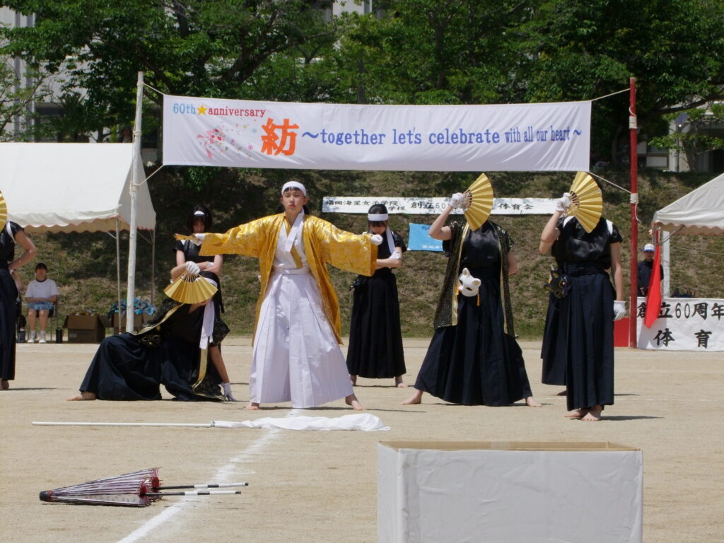 赤白ブロック合同の演舞やダンス、さらに、創立60周年を記念して生徒と先生方とが合唱した感謝の歌「ふるさと(嵐)」など、忘れられない思い出ができました。