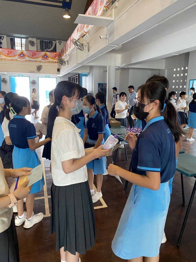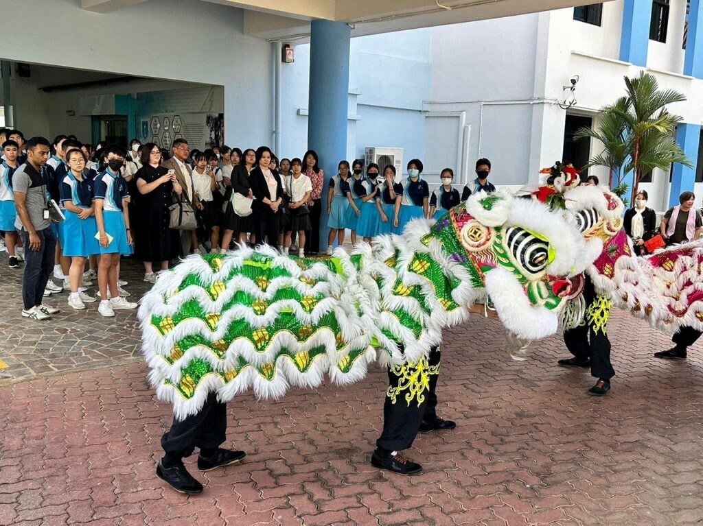 創立60周年記念シンガポール修学旅行にて、世界的なネットワークを誇る福岡海星女子学院高等学校は、シンガポール海星・ハイシン・カトリック・スクールを訪れました。男子生徒による迫力あるライオンダンスでの歓迎に、深く感激し、校長先生をはじめとする諸先生方の心温まる準備に心から感謝しました。ハイシン・カトリック・スクールは、本校と同じマリアの宣教者フランシスコ修道会によって設立された学校です。校訓は本校と同じ「愛をもって真理に向かう」です。生徒たちの制服には、ラテン語で、このスクールモットー
