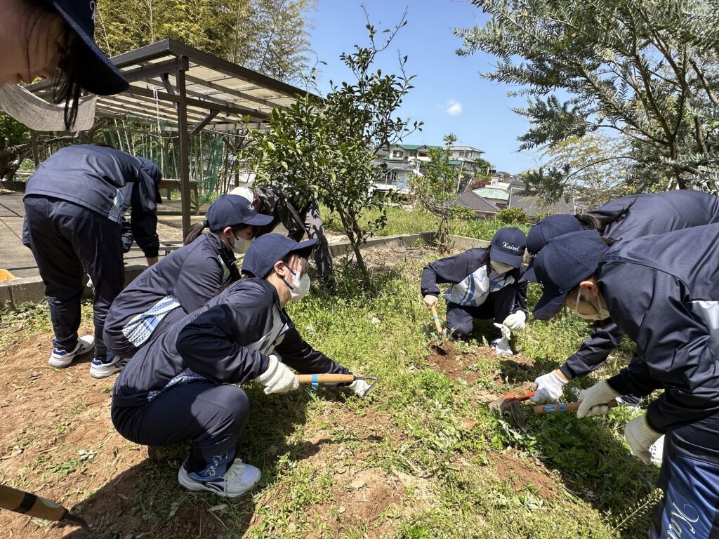 草だらけの畑でしたが、皆で草を取るとこんなにきれいになりました。初めて草取りをする生徒、虫との出会いを楽しむ生徒、草抜きにやりがいを感じ、心地よい汗をかきました。
