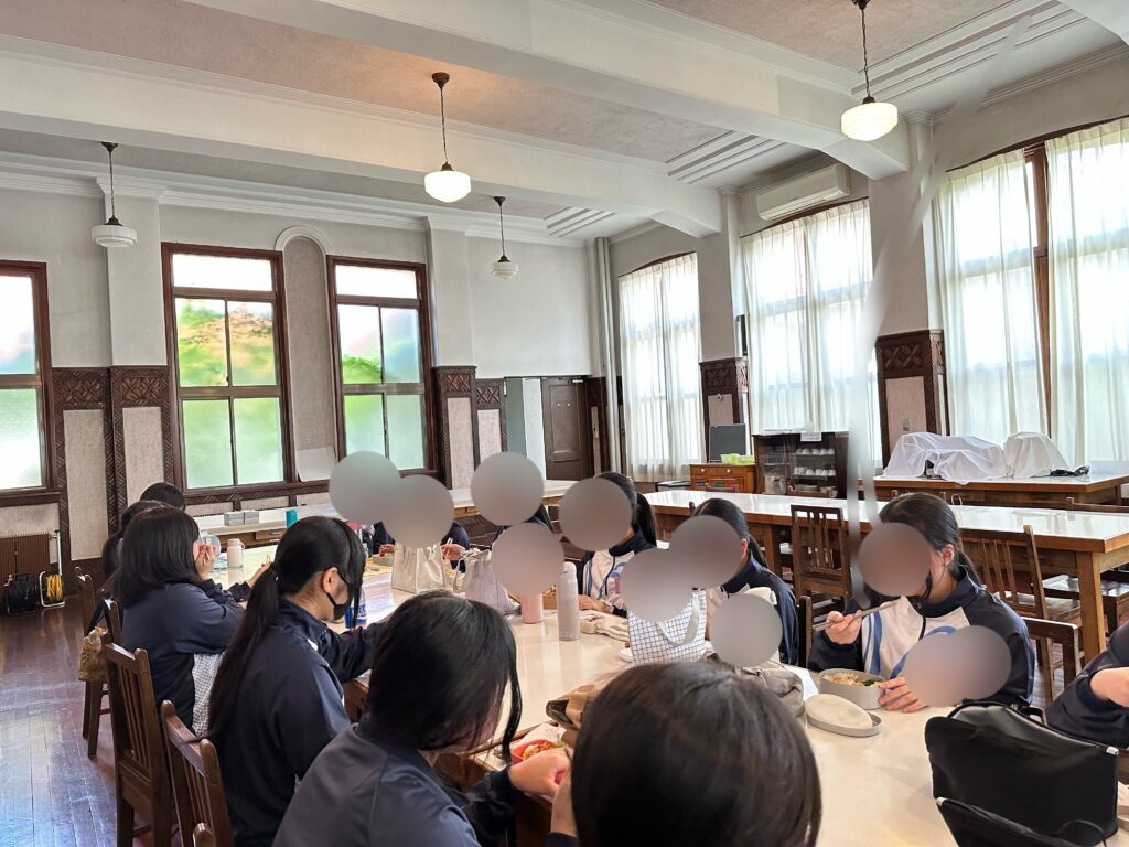 一つのテーブルを囲み、皆でお祈りをして昼食をいただきました。お食事の後は、一人ひとり自己紹介をして楽しいひと時を過ごしました。