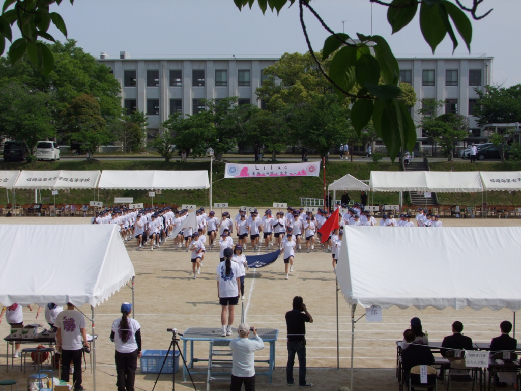 スローガン「Lilac~最高の仲間と栄光へ~」のもと今年は「花」をテーマに盛大に体育会が開催されました。平日開催にもかかわらず、たくさんの保護者の方にもお越しいただき、ありがとうございました。練習期間中は雨の日もありましたが、当日は晴天青空、体育会日和となりました。また、テレビ局FBS「めんたいワイド」の生中継取材を受け、生徒の気持ちも一気に体育会へ向けて高まりました。