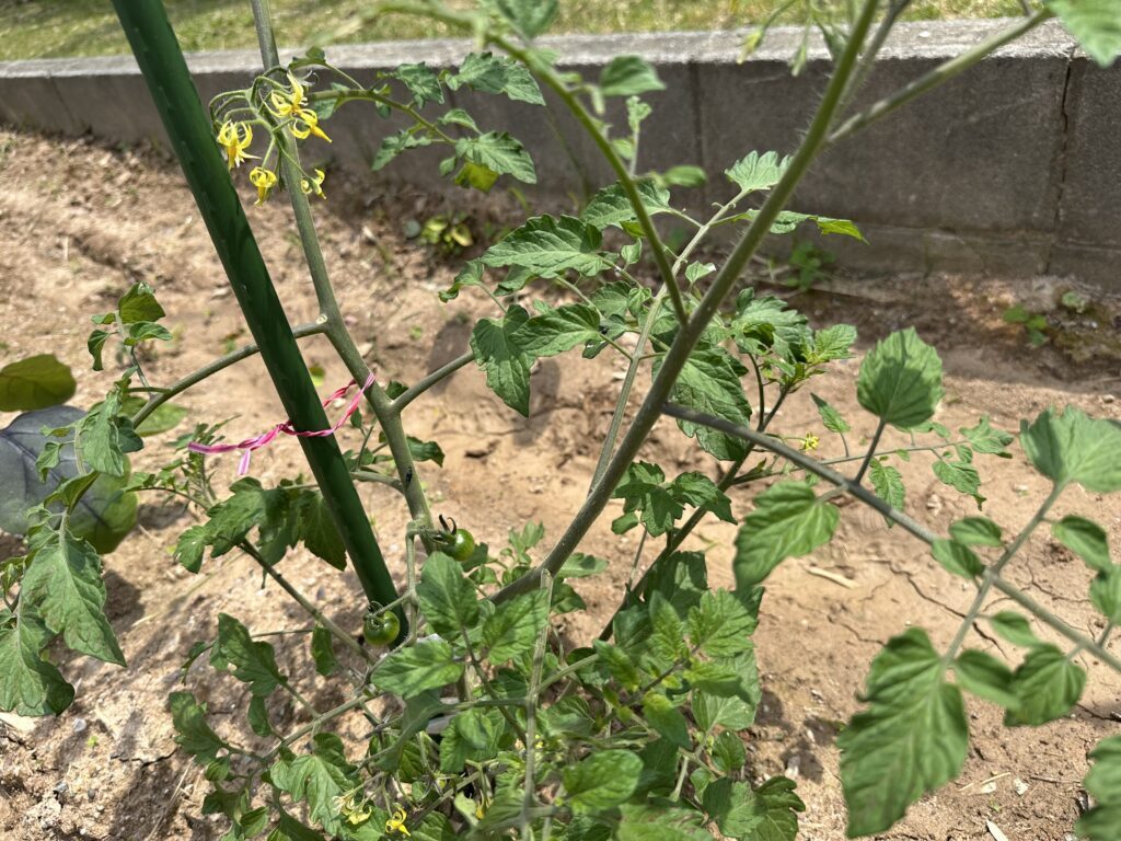 苗から植えたトマトも青い実を実らせていました。