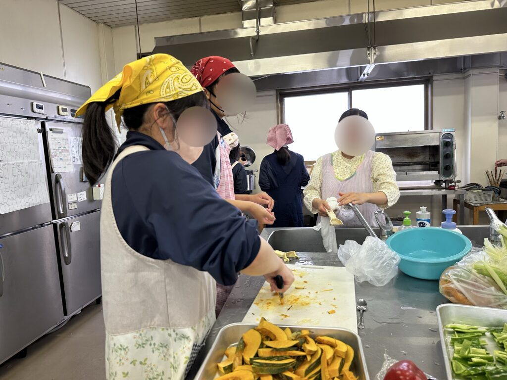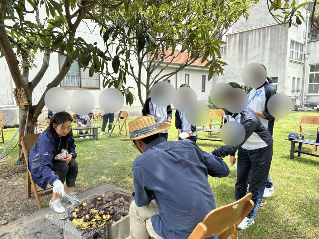 神学院の野菜を収穫させていただき、バーベキューを行いました。班に分かれて準備をしました。