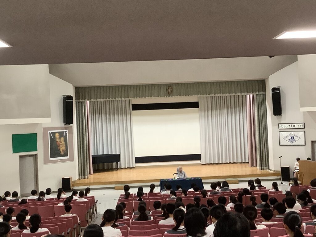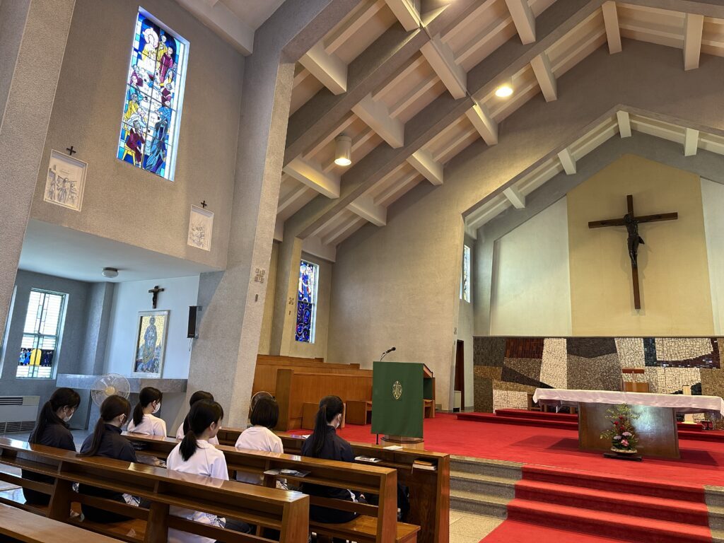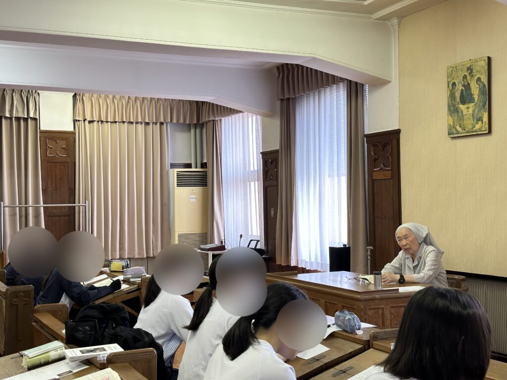 シスター入江より講堂朝礼で全校生徒にお話をいただいた後、ブライトコースの生徒たちと一緒に神学院に行っていただきました。