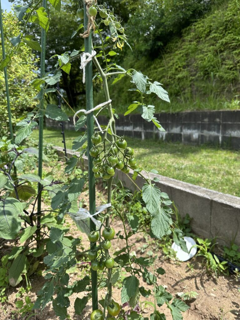 畑の野菜も順調に育っています。トマトもピーマンも実をつけていました。