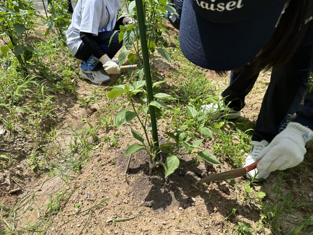「畑ではびっくりする位、野菜の葉が生い茂っていました。苗から植えたのにあんなに大きく成長していて嬉しいです。自分のピーマンが実っていたので、収穫しました。私たちがいない間も畑を気にかけてくださっている神学院の神父様に感謝の気持ちでいっぱいです。」(ある生徒の感想から)