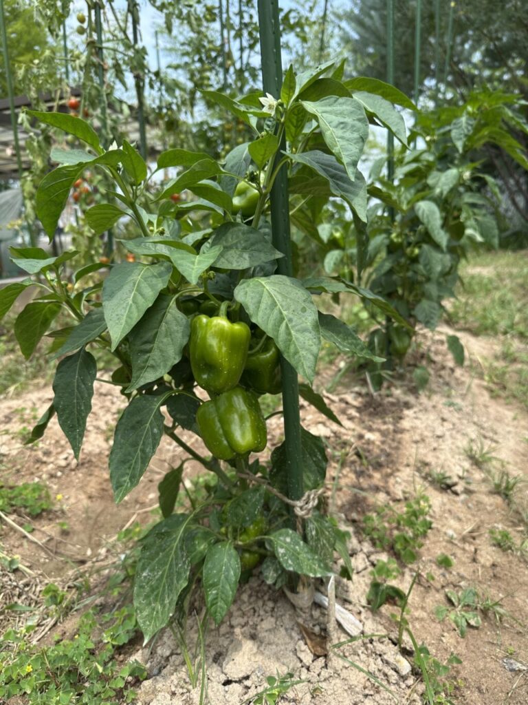 ご講話のあとは畑に行きました。ブライトの畑の夏野菜は大きく育ち、収穫の時期を迎えています。