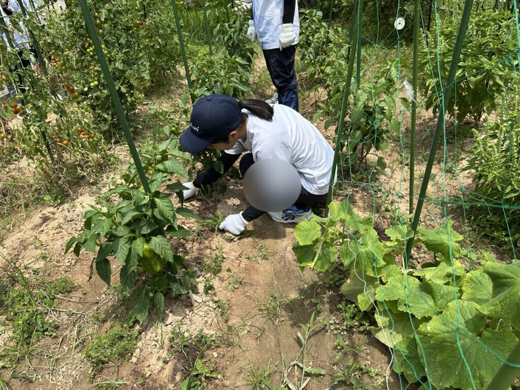 「久しぶりに神学院に来て、トマトがたくさんなっていて嬉しかったです。皆で楽しく収穫しました。初めは苗だった野菜が、日が経つにつれこんなに大きく成長していくのは驚きです。良い経験をさせていただいています。」(ある生徒の感想から)