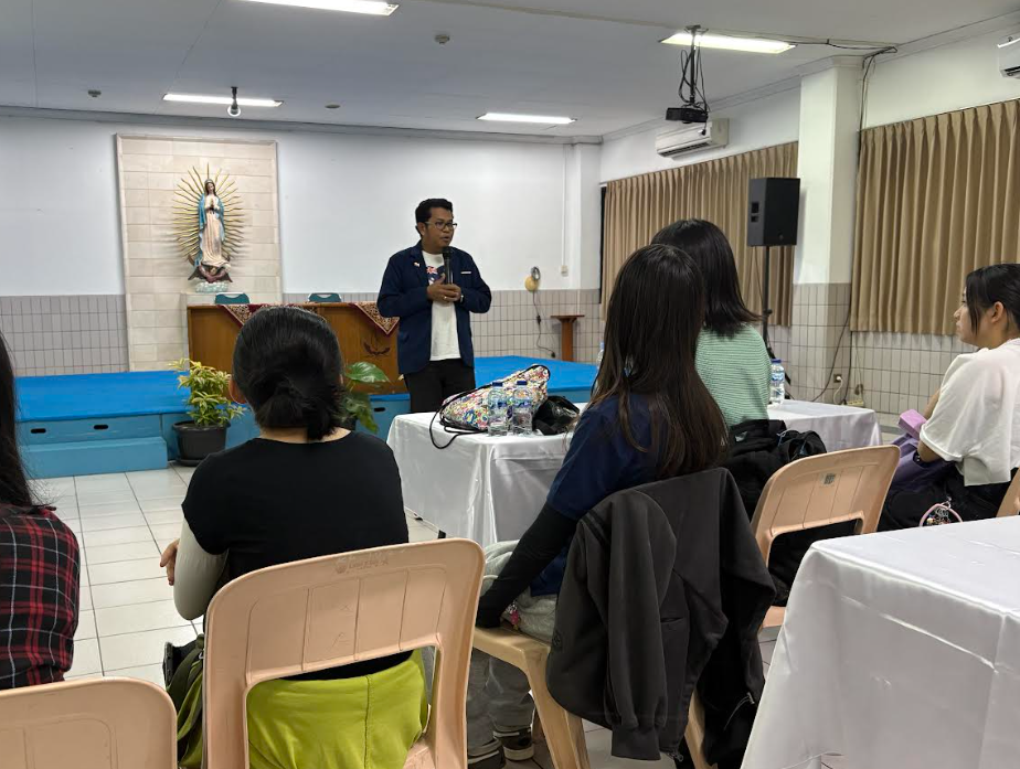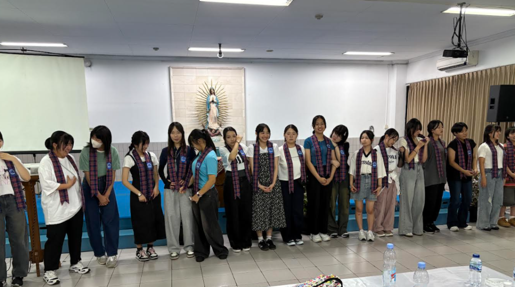 レジーナパシスからは生徒たちと私たち教師にも記念の品をいただきました。生徒の首にかかっているものが記念の品です。